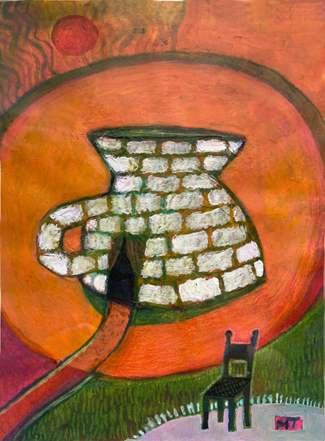 Collage mit Seidenpapier, Aquarell und Buntstift auf Papier