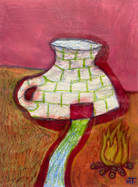 "Tasseniglu_1", Collage mit Seidenpapier, Aquarell und Buntstift auf Papier